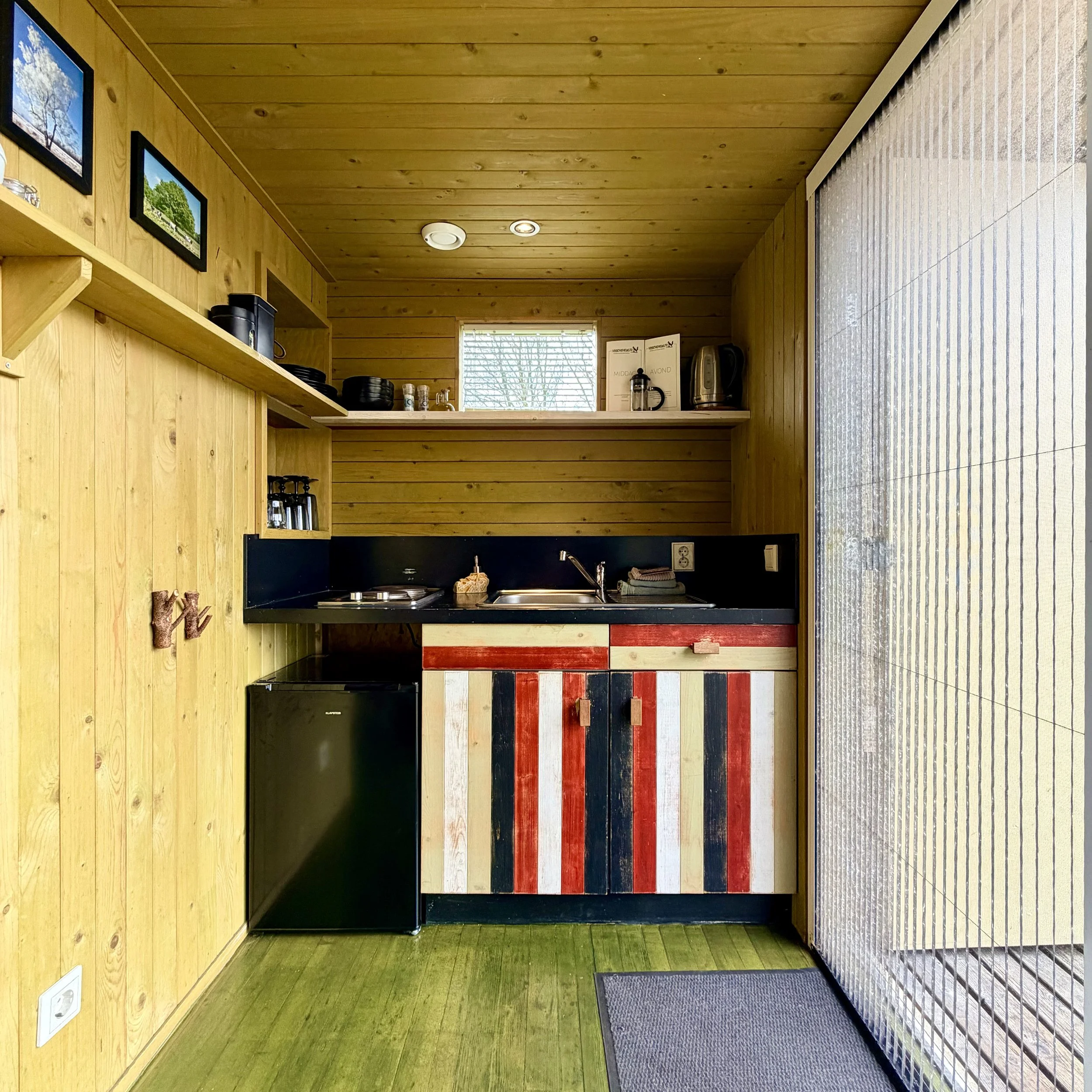 Het slaapgedeelte is boven te bereiken via een laddertje
